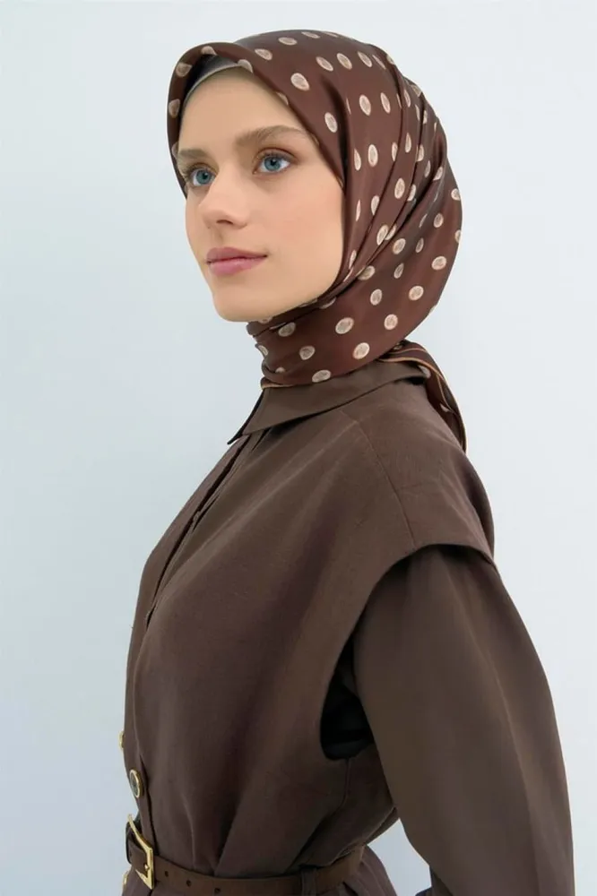 Armine Puantiyeli Desen %100 Twill İpek Eşarp Şehir temposuna uyum sağlayan zarif bir ışıltı ve konforlu bir kullanım sunar.