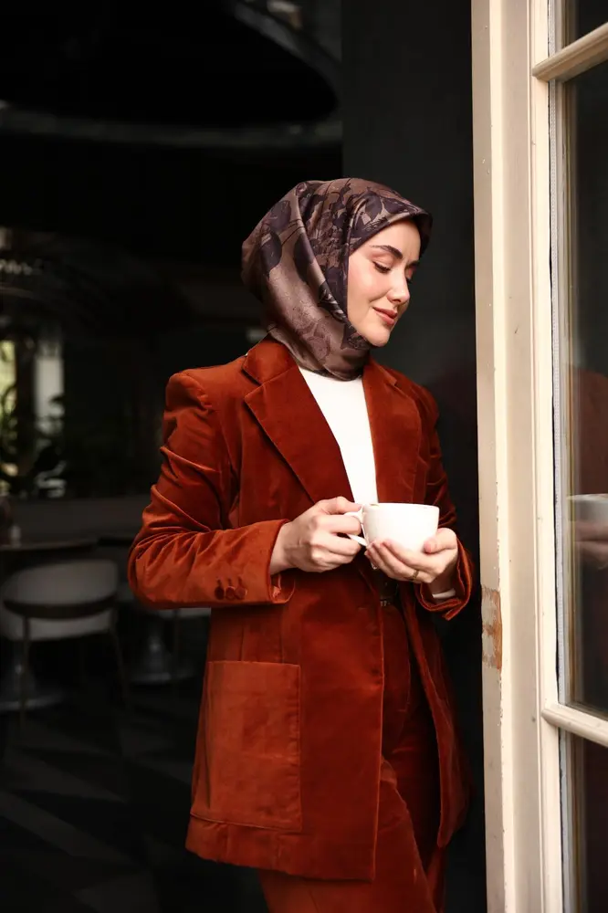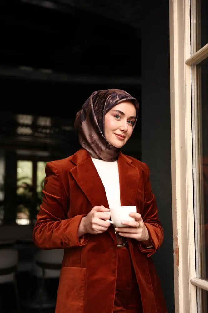 Zerafetim Twill İpek Eşarp Bordo, Vizon