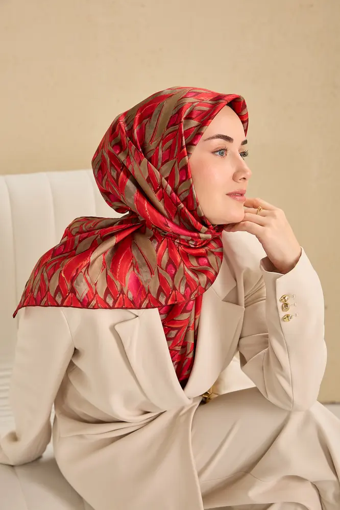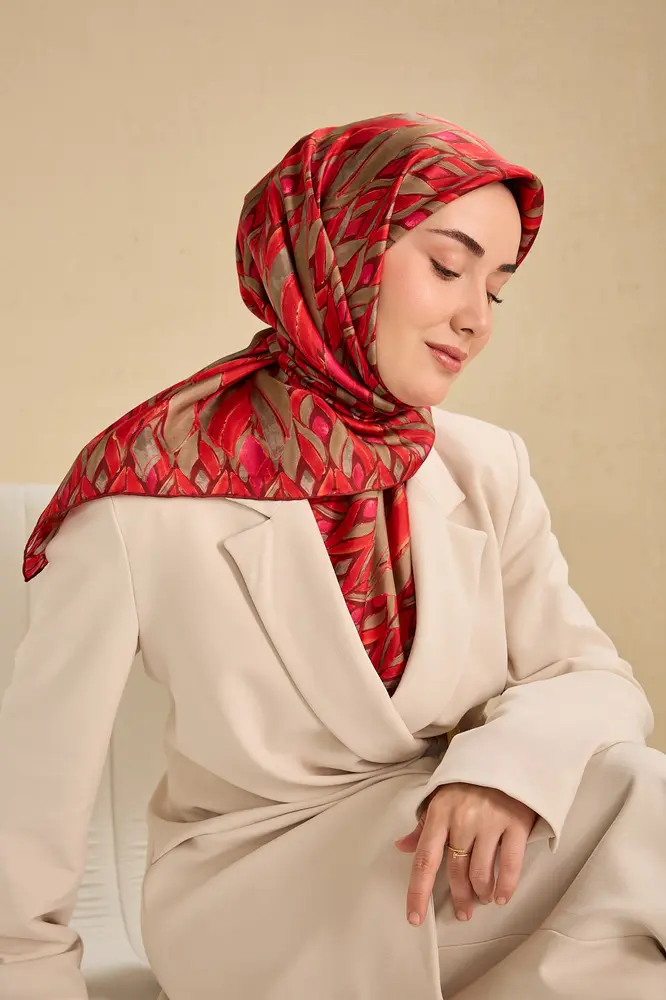 Çilek kırmızı, pembe, gri, yeşil gri tonlarının doğal uyumunu yansıtan bu twill ipek eşarp, tok duruşlu yapısıyla gün boyu formunu korumak isteyen kullanıcılar için ideal bir seçimdir. Twill dokumasının sunduğu kaymaz kumaş özelliği, eşarbın başta kolay şekil almasını sağlar ve gün içinde kayma hissini en aza indirir.