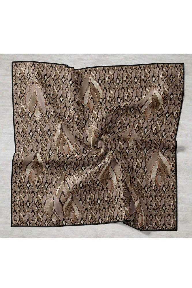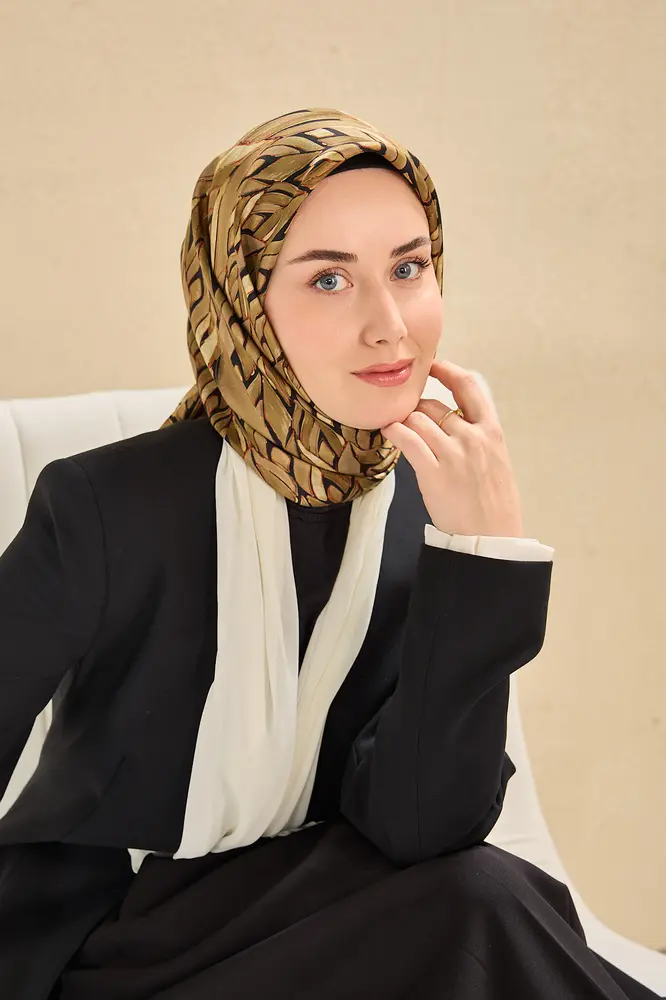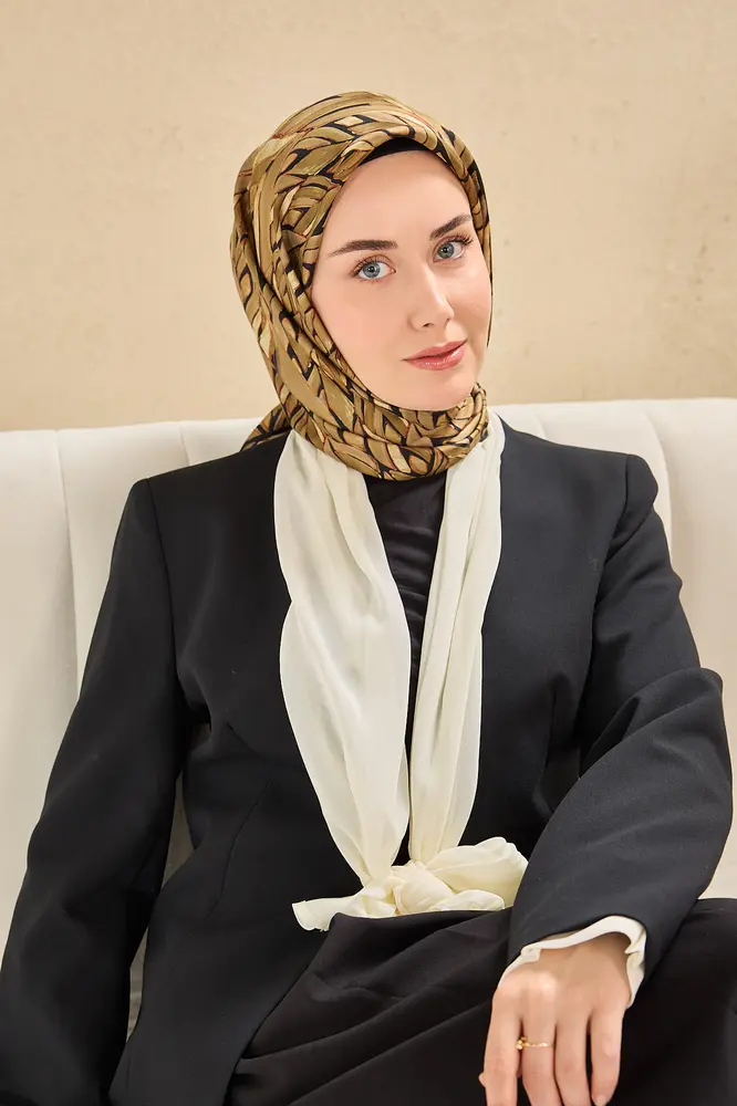 Yeşil bej, siyah, krem, bej tonlarının doğal uyumunu yansıtan bu twill ipek eşarp, tok duruşlu yapısıyla gün boyu formunu korumak isteyen kullanıcılar için ideal bir seçimdir. Twill dokumasının sunduğu kaymaz kumaş özelliği, eşarbın başta kolay şekil almasını sağlar ve gün içinde kayma hissini en aza indirir.