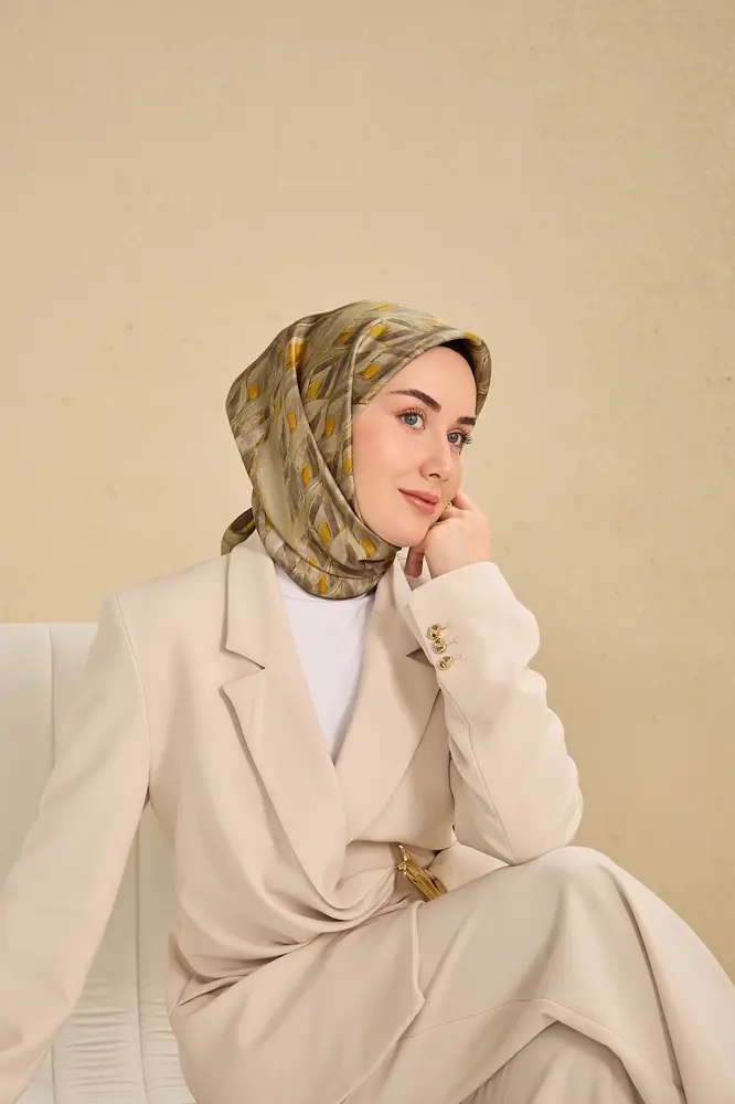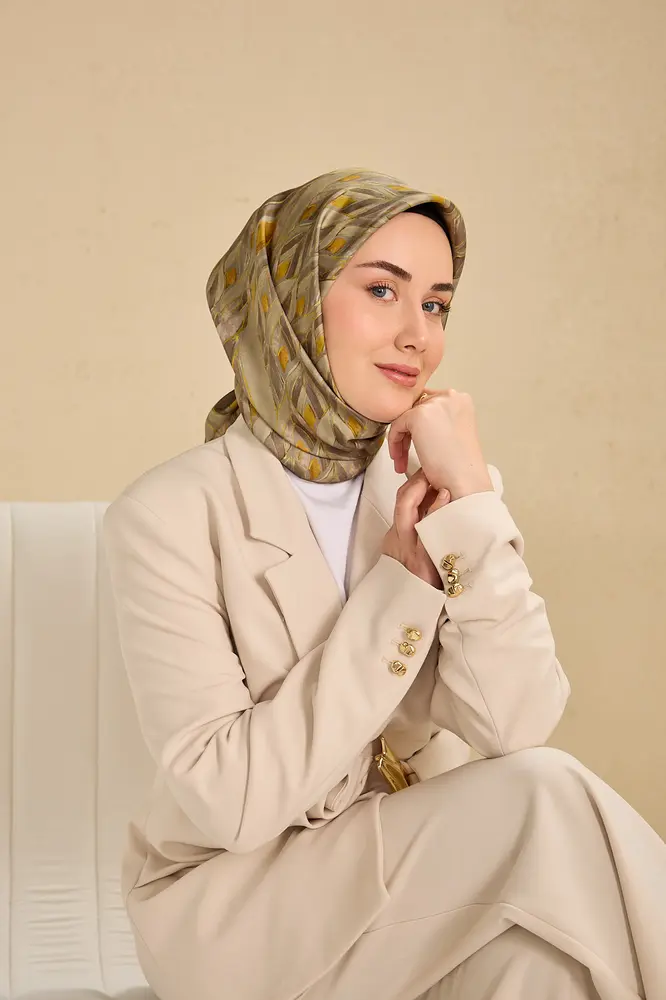 Yeşil, vizon, asit yeşili tonlarının doğal uyumunu yansıtan bu twill ipek eşarp, tok duruşlu yapısıyla gün boyu formunu korumak isteyen kullanıcılar için ideal bir seçimdir. Twill dokumasının sunduğu kaymaz kumaş özelliği, eşarbın başta kolay şekil almasını sağlar ve gün içinde kayma hissini en aza indirir.