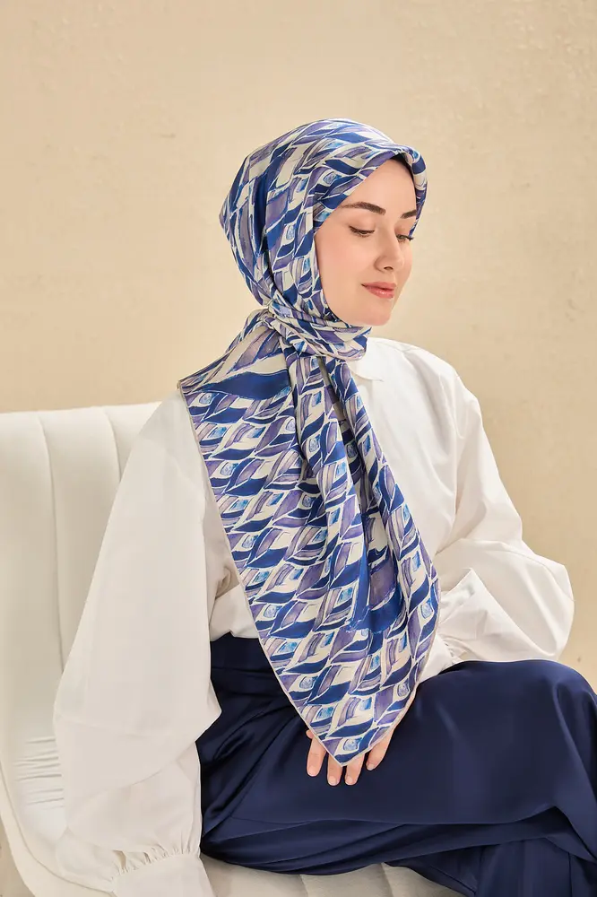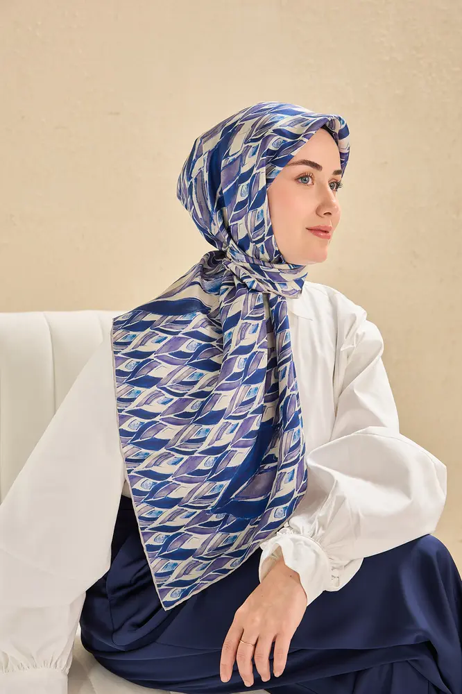 Krem, mavi, eflatun tonlarının doğal uyumunu yansıtan bu twill ipek eşarp, tok duruşlu yapısıyla gün boyu formunu korumak isteyen kullanıcılar için ideal bir seçimdir. Twill dokumasının sunduğu kaymaz kumaş özelliği, eşarbın başta kolay şekil almasını sağlar ve gün içinde kayma hissini en aza indirir.
