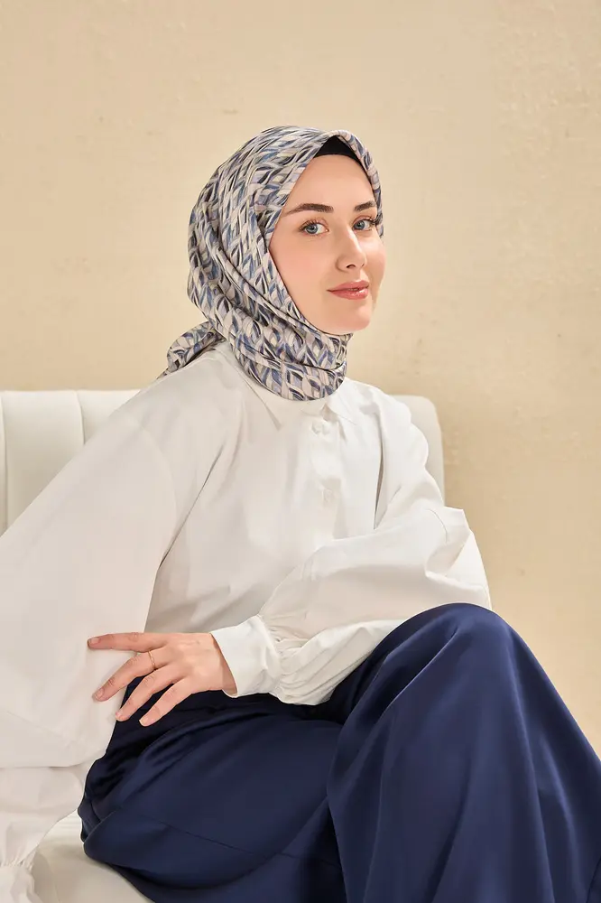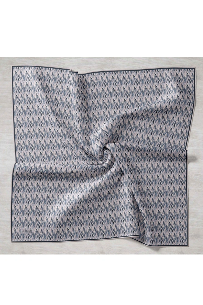 İndigo, gri, bebe mavi, lacivert tonlarının doğal uyumunu yansıtan bu twill ipek eşarp, tok duruşlu yapısıyla gün boyu formunu korumak isteyen kullanıcılar için ideal bir seçimdir. Twill dokumasının sunduğu kaymaz kumaş özelliği, eşarbın başta kolay şekil almasını sağlar ve gün içinde kayma hissini en aza indirir.
